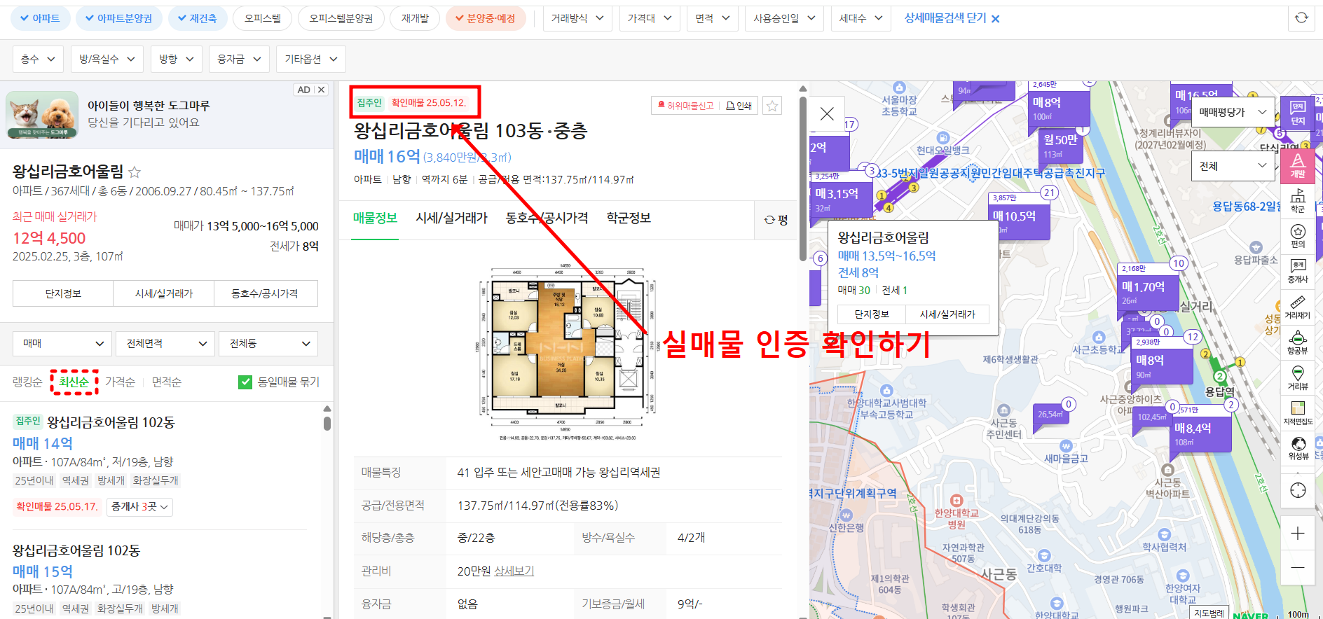 ✅ 실매물 인증 아이콘이 있는 매물만 우선적으로 보는 것이 안전합니다.