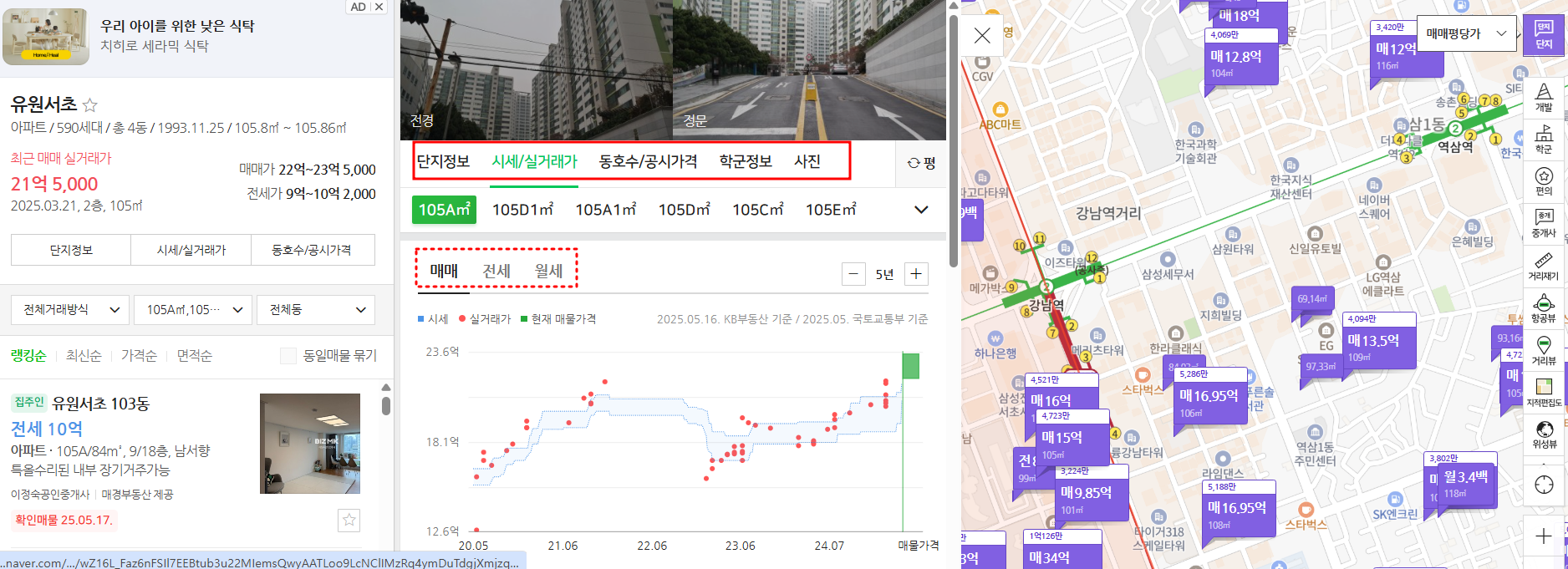 네이버 부동산에서는 특정 지역이나 단지를 검색하면, 다음과 같은 시세 데이터를 제공합니다.