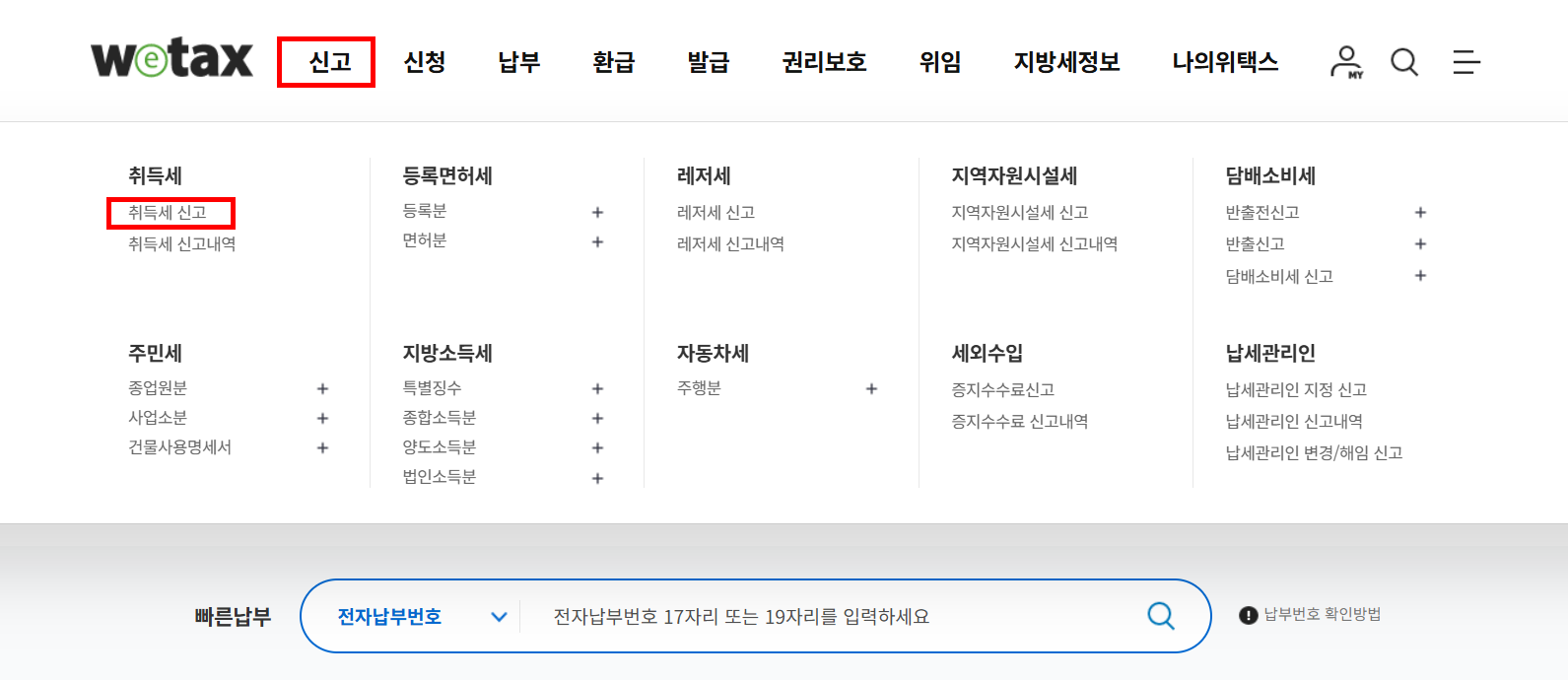 - 위택스에서 취득세 신고 및 납부