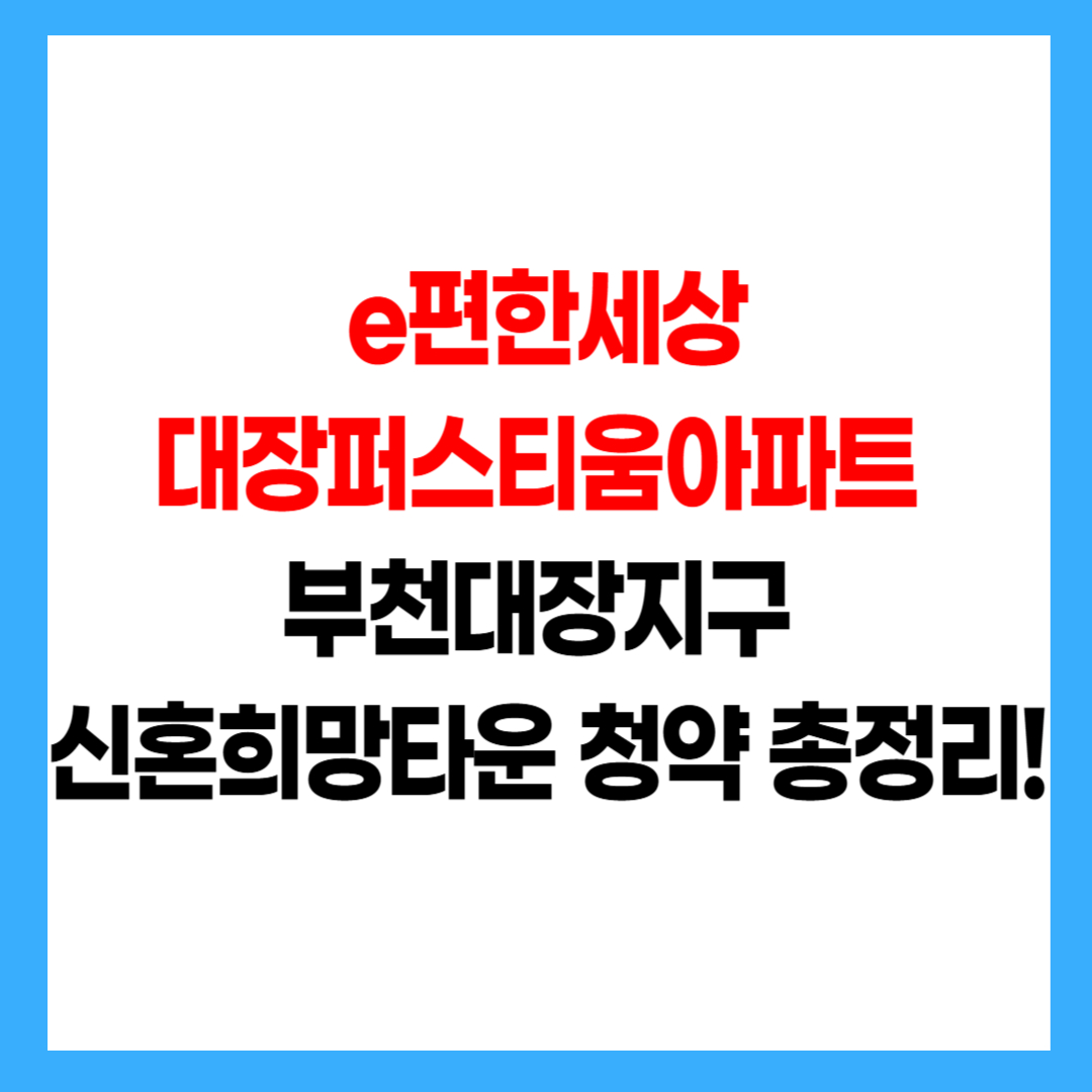 2025 부천대장 a5 신혼희망타운, 청약 핵심정보 한눈에 보기2025년 부천대장 a5(A-5블록) ‘e편한세상 대장 퍼스티움’ 신혼희망타운 본청약이공식 입주자모집공고와 함께 본격적으로 시작됩니다.
